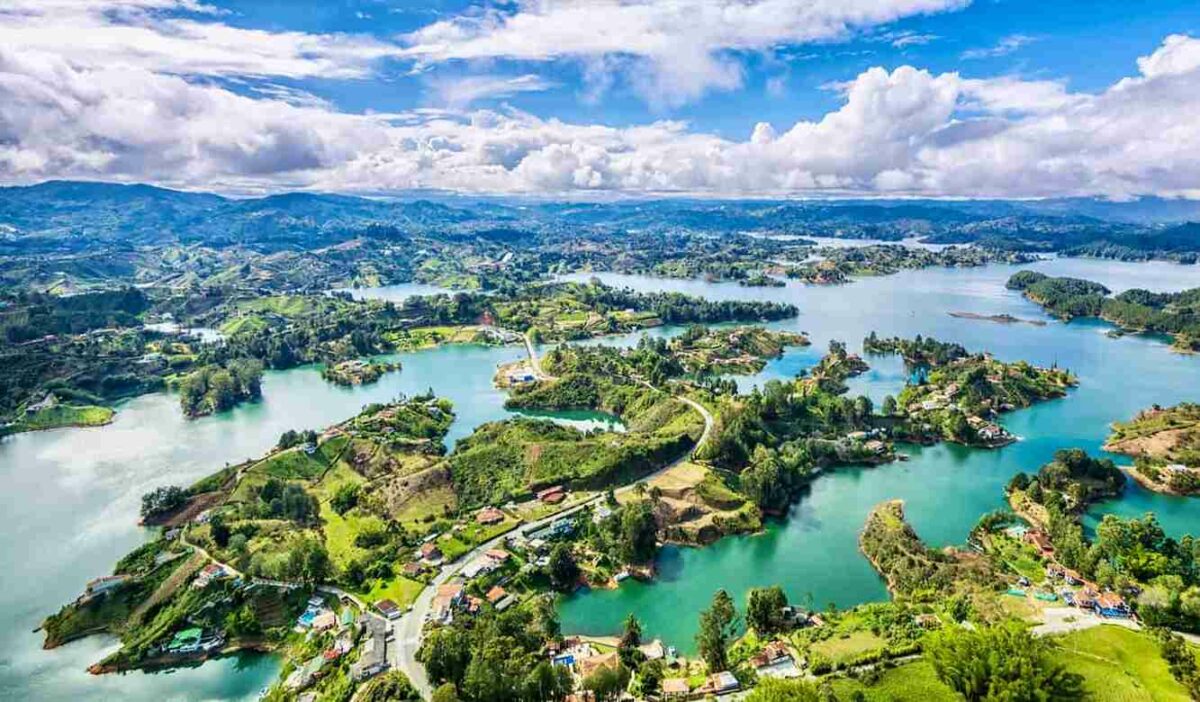It is a short distance from the city of Medellin. The town of Guatape is very beautiful and picturesque. There is a climb through the famous rock of El Penol which gives you an astounding paranomic view of the nearby islands and lakes. The streets are colorful and you can also visit the waterfront.